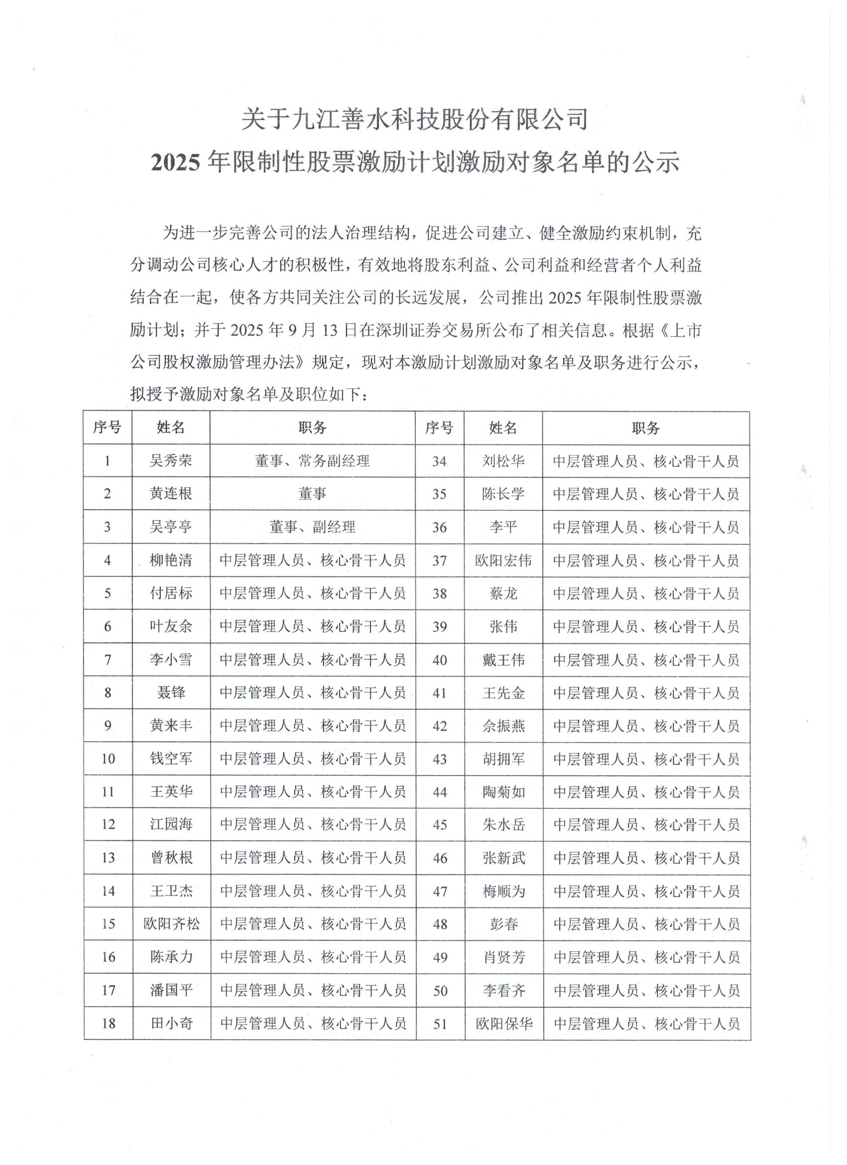 2012年5月,九江善水科技股份有限公司正式成立,秉承“上善若水,厚德载物”的企业精神至今...